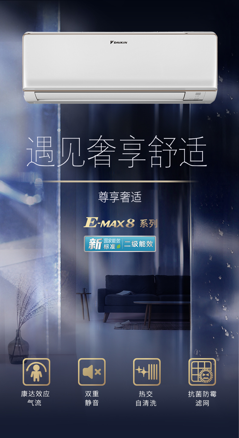 E-MAX 8 新一代康达效应气流 不直吹更舒适 二级能效/大1HP二级能效/大1.5HP三级能效/大1HP三级能效/大1.5HP